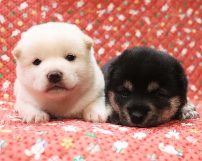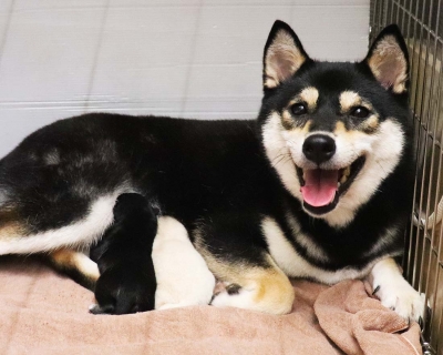 2022年10月16日に赤柴父犬、ぼくと黒柴母犬、おつゆの間に白柴犬雄1頭、黒柴犬雌1頭が生まれました。子犬情報ページをご覧下さい。