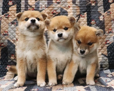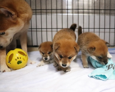 2022年11月6日に黒柴父犬、豹太と赤柴母犬、いなりの間に赤柴犬雌3頭が生まれました。子犬情報ページをご覧下さい。