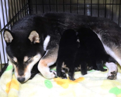 2022年3月3日に黒柴父犬、豹吾と黒柴母犬、いくらの間に黒柴犬 雄1雌1が生まれました。子犬情報ページをご覧下さい。