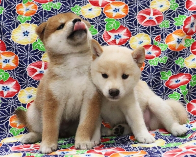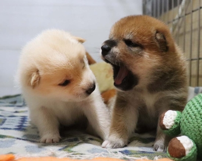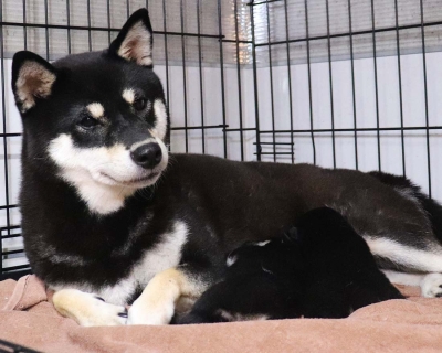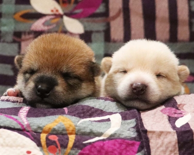 2023年5月25日に黒柴父犬、豹太と赤柴母犬、いなりの間に赤柴犬雌1頭、白柴犬雌1頭が生まれました。子犬情報ページをご覧下さい。